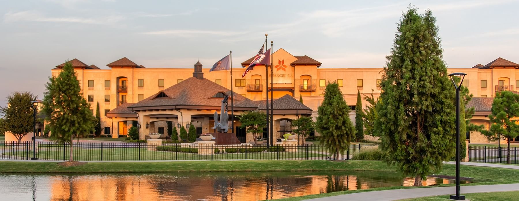 Shangri-La Resort is located at the tip of Monkey Island in the center of northeastern Oklahoma's beautiful Grand Lake O' the Cherokees. All facilities are accessible by land, water, and air, with nearby options including the Grand Lake Regional Airport on Monkey Island with its 3,925-foot runway and the Grove Municipal Airport with a 5,250-foot runway, just a short car ride away. Shuttle service is available to local airports, and transportation arrangements to and from the regional airports can be made. Commercial air travelers can utilize either Tulsa International Airport (TUL), Northwest Arkansas Regional Airport (XNA), or Joplin Regional Airport (JLN), all of which are slightly more than an hour's drive.