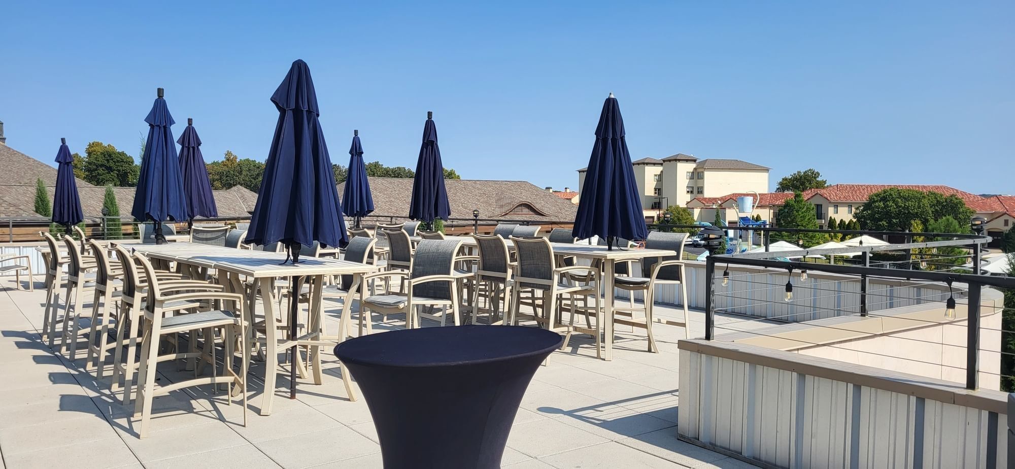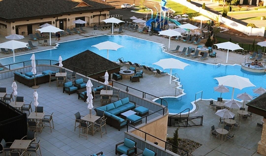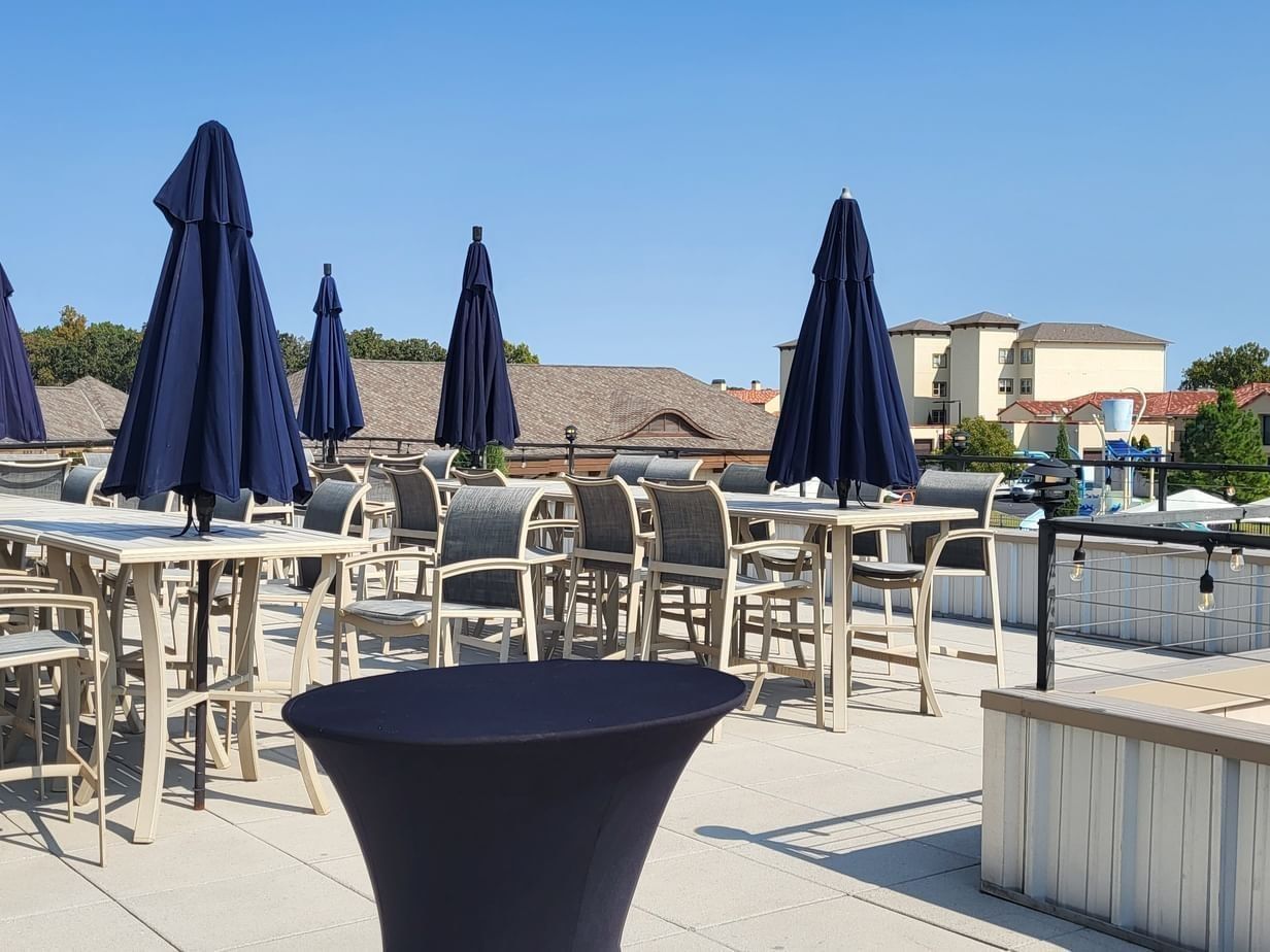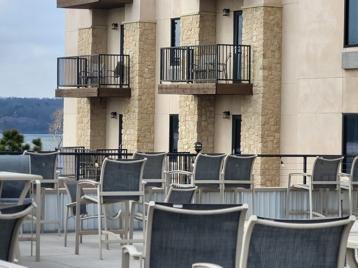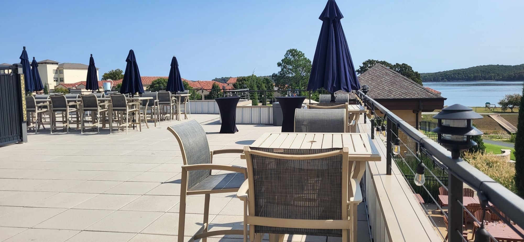Perched above Doc’s Bar & Grill, this 1,625-square-foot patio offers panoramic views of the resort pool and Grand Lake—ideal for cocktail parties up to 100 guests.