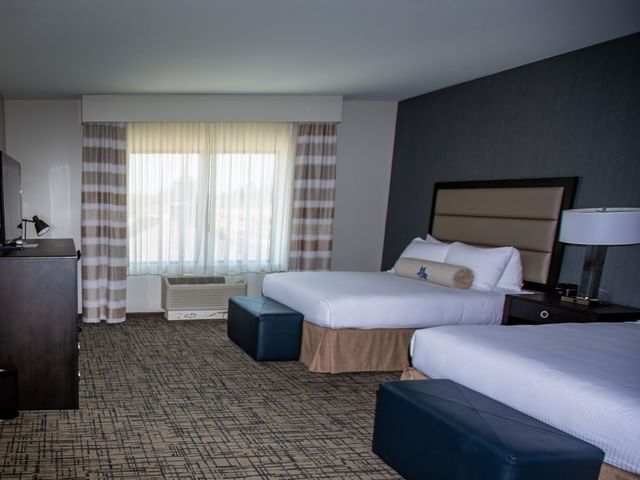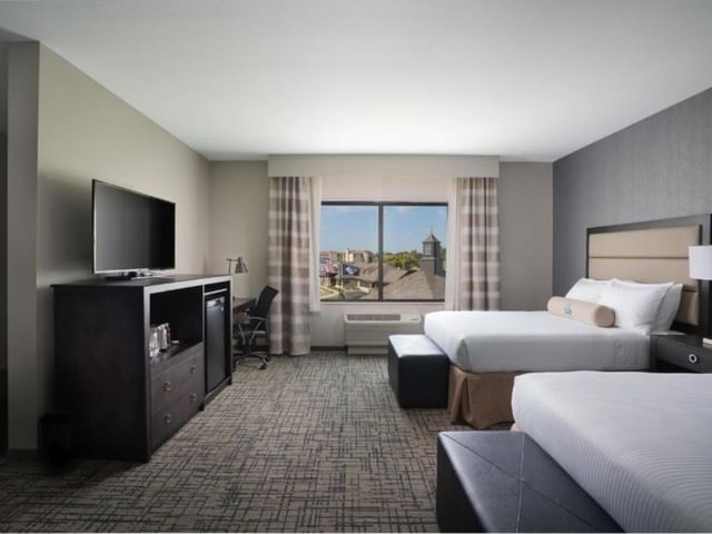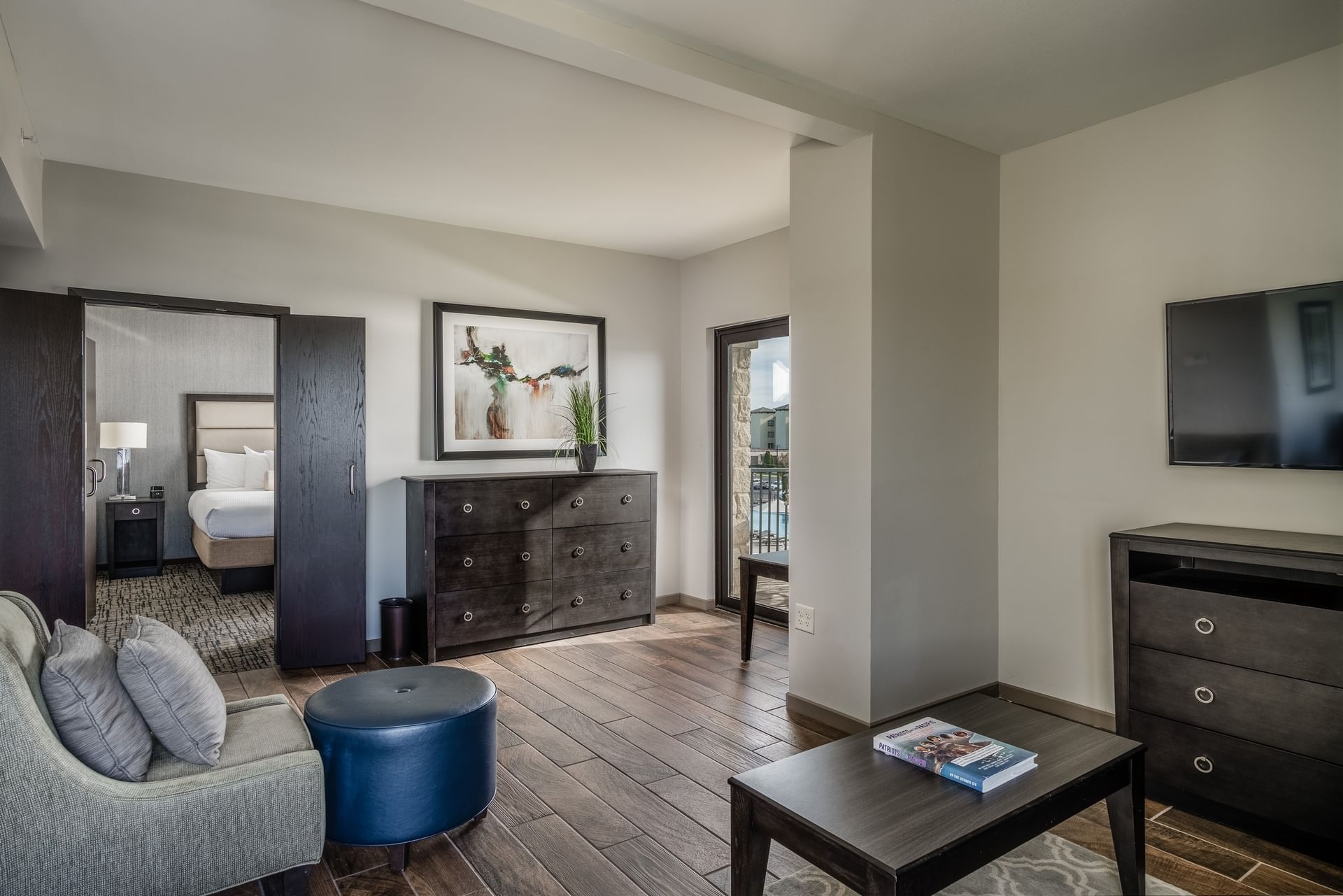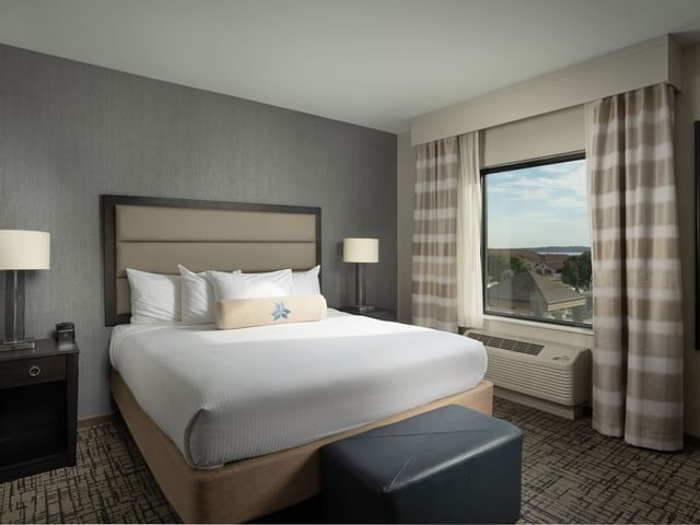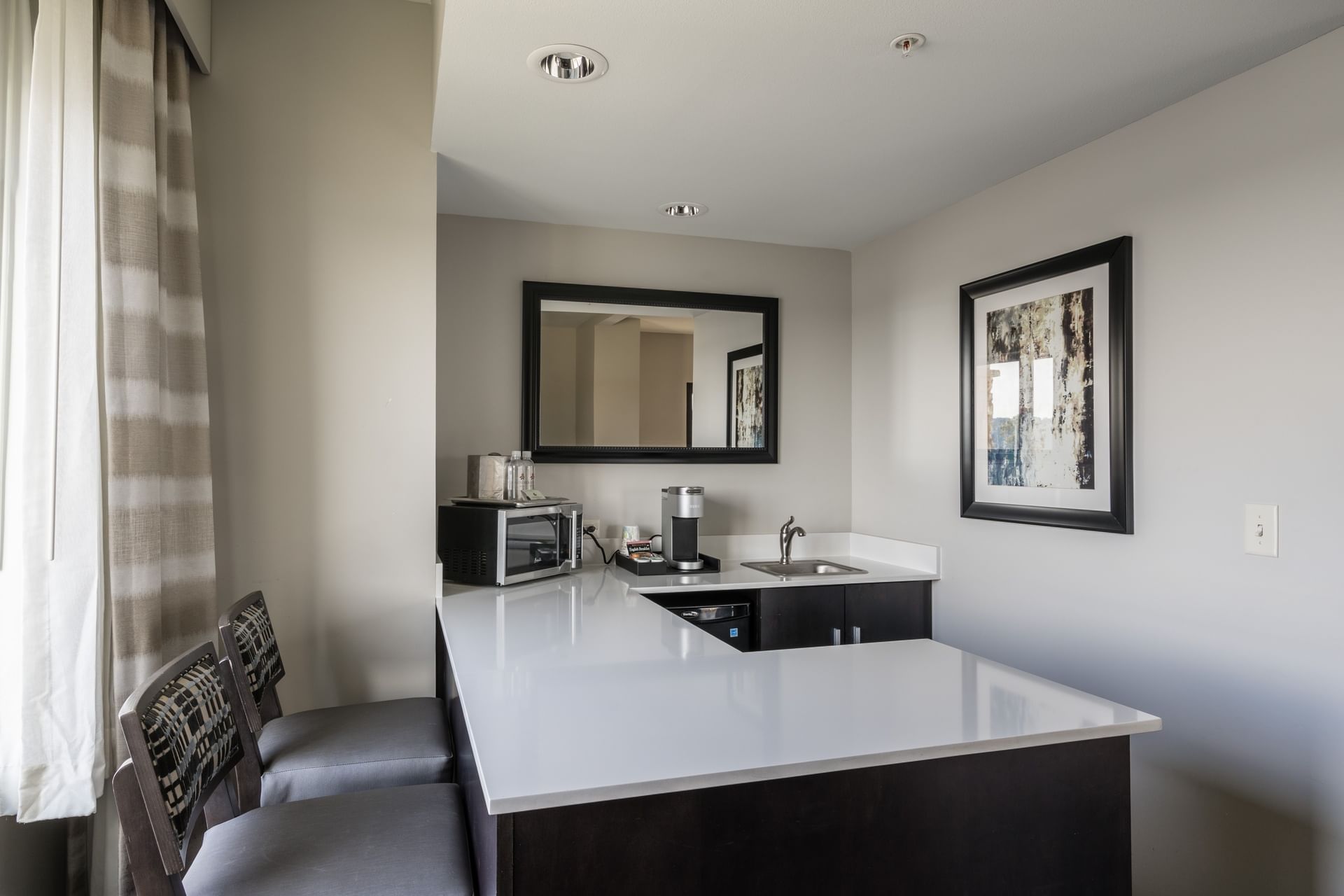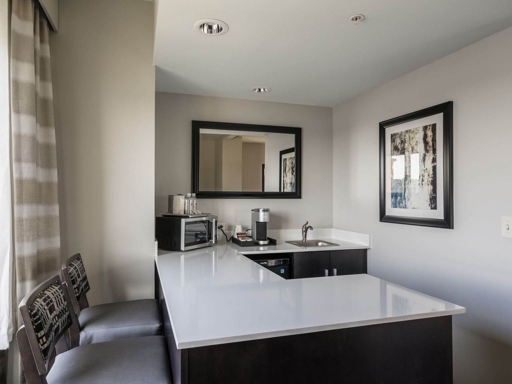 Invite guests over for dinner or cocktails in this spacious, luxury suite featuring a comfortable living area with sofa and chair, a convenient kitchen area and dining bar. The separate bedroom features a king size bed with work desk and spacious guest bathroom with modern amenities...